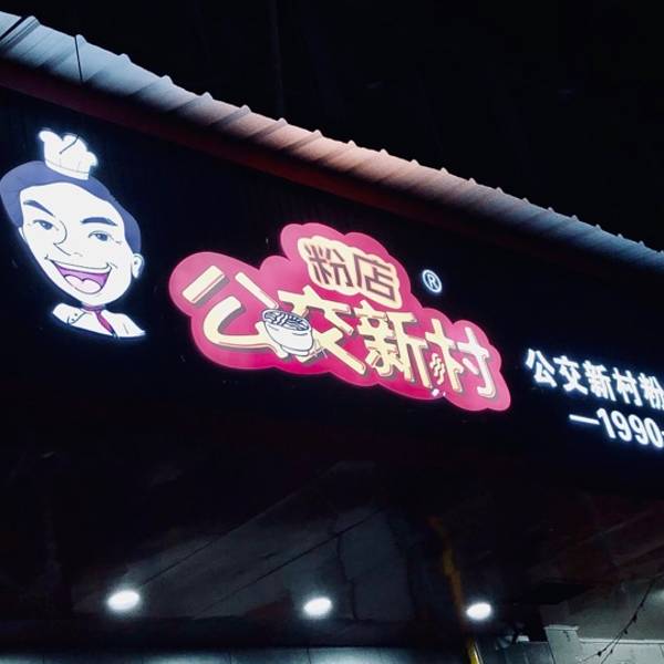 看来长沙真的是一个特别喜欢嗦粉的城市,所以长沙的必吃榜上才会有那么多家粉店,本来是打算每一家都去一下的,奈何我实在太懒了,别人每天早上出门,我每天下午或者傍晚才出门,导致最后只是打卡了一两家粉店,这家公交新村粉店算是我去过的最大的一家粉店了。 🍁🍁🍁🍁🍁🍁🍁🍁🍁🍁🍁🍁🍁 当天晚饭的第二顿粉就去了这里—公交新村粉店 一家非常接地气,很当地的粉店,看来都是老客户,邻里邻居的或者是像我这种“游客吃货” 据说长沙人不完早晚都喜欢嗦粉,看来是真的,晚上8,9点到的,人气依旧十足。 •📍店铺位置:曙光中路475号 •🚌嗦粉交通:公交新村站,可坐143号公交车 •🕰营业时间:5:00-次日02:00 •💰人均:¥10.00 •🌈环境:墙上的人物还是非常萌的,也非常的显眼,很特别;粉店很大,桌椅很大很长,看着还蛮干净的,桌子边有垃圾桶。 因为之前吃了一碗面,隔了20分钟又嗦粉,所以点了一份素菜的粉--雪里蕻粉 还真的应该试试他们这里的料,看着色香味俱全哦,卤料很足的样子。 •🍜雪里蕻粉 ¥9.00 排队点单,然后拿粉,总的也就几分钟,阿姨们烧粉真的超级快啊;再自己加料,找位子坐下,桌上有醋、辣椒等作料可以自行调料。 雪里就是雪菜炒肉沫,可以额,酸酸咸咸的好吃,一口汤也是极棒的;这里的粉还算比较有劲道,大概是雪菜比较下饭,食欲有变好哦。 除了自己选择的码子,还有一些自选配料可以自助加,有雪菜、酸豆角、榨菜、辣椒、蒜泥、葱等等,还是非常的人性化哦。 粉的颜值上也不错,阿姨撩粉的技术很厉害,一筷子粉根根清晰整齐,碗上还有“公交新村粉店”的logo,白色的粉绿色的雪菜,很好看。 总的还是比较推荐的