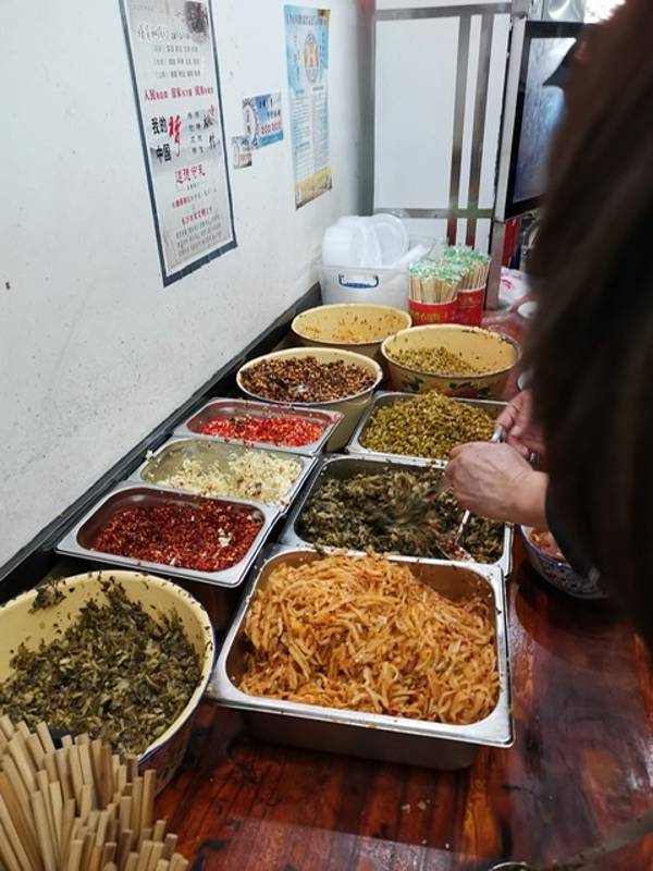 除了自己选择的码子,还有一些自选配料可以自助加,有雪菜、酸豆角、榨菜、辣椒、蒜泥、葱等等,还是非常的人性化哦。