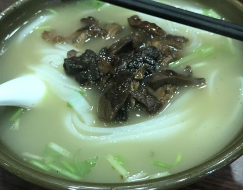 牛杂中包含几种潮州卤水,非常入味。这家店主要经营澄海狮头鹅等潮洲美食。面条宽宽的,比较筋道