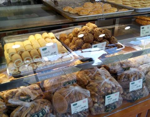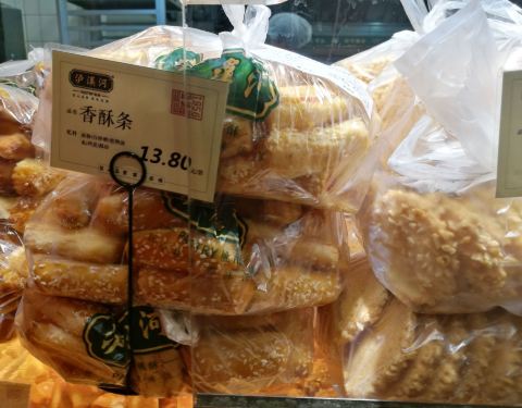 每次在店铺前面坐公交都看他家排两个长队,和隔壁的忘记宫廷桃酥王向在比擂一样。比较了下,他家的风格偏重西式,和杨记宫廷桃酥王的传统风格大相径庭。点心只买过椰蓉酥脆按一包装袋称重,份量多,很酥脆。还是比较符合中老年人口味的,难怪排队的老少都有呢!