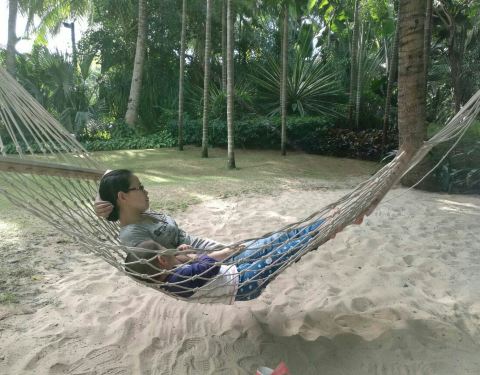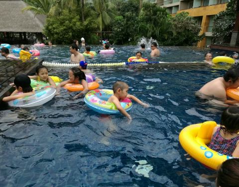 酒店的自助早餐在这里,管理有序,如果用餐满员,就排队等一下,有了空位再进,所以用餐时并不感觉太拥挤。这个餐厅是24小时服务,虽然收点服务费,但太方便了。肉骨茶我喜欢吃,儿子喜欢吃汉堡。那天点了两个西...酒店的自助早餐在这里,管理有序,如果用餐满员,就排队等一下,有了空位再进,所以用餐时并不感觉太拥挤。这个餐厅是24小时服务,虽然收点服务费,但太方便了。肉骨茶我喜欢吃,儿子喜欢吃汉堡。那天点了两个西餐的汤,不好喝,有点遗憾。酒店本身很棒,设施齐全,是亲子游的好选择。应该是三亚湾这块最好的酒店了,令人难忘。