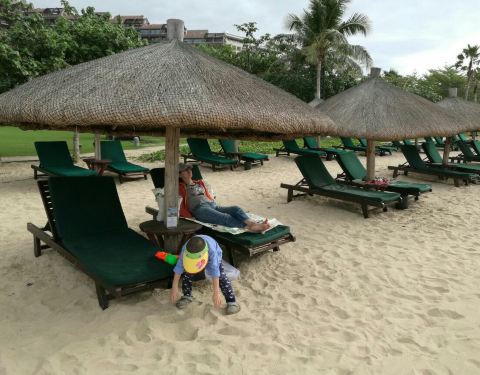 酒店的自助早餐在这里,管理有序,如果用餐满员,就排队等一下,有了空位再进,所以用餐时并不感觉太拥挤。这个餐厅是24小时服务,虽然收点服务费,但太方便了。肉骨茶我喜欢吃,儿子喜欢吃汉堡。那天点了两个西餐的汤,不好喝,有点遗憾。酒店本身很棒,设施齐全,是亲子游的好选择。应该是三亚湾这块最好的酒店了,令人难忘。