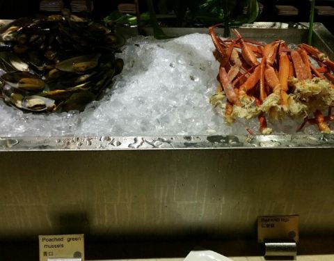餐点的种类真的不多,看上去都挺精致的,口味中上,个人觉得甜点类的都满推荐的,不过畅饮的汽水都没汽,令人失望,海鲜部份是冰鲜的,女友表示一般,就翡翠螺比较好吃。整体环境很不错,尤其是现场驻唱的老外,...
