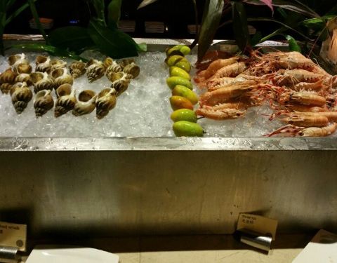 餐点的种类真的不多,看上去都挺精致的,口味中上,个人觉得甜点类的都满推荐的,不过畅饮的汽水都没汽,令人失望,海鲜部份是冰鲜的,女友表示一般,就翡翠螺比较好吃。整体环境很不错,尤其是现场驻唱的老外,唱歌轻柔浪漫,营造出的气氛相当舒服。本来以为他不会中文,结果忽然唱了首橄榄树,有些惊艳。推荐给有时间慢慢消磨,享受小资生活的人。