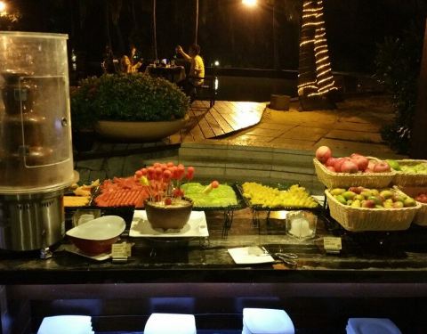 火锅、烧烤、中餐、西餐、水果、冰激凌,食材新鲜,味道很好,美食,美景,还有演出,大人孩子都很开心!推荐!