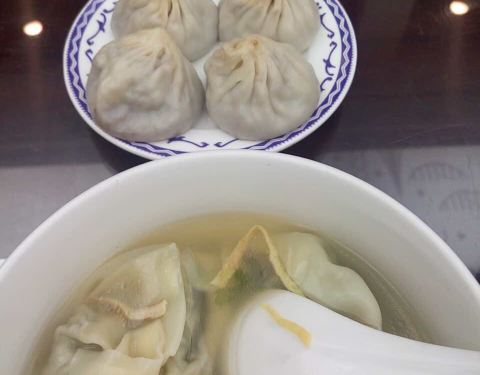 小笼包皮薄肉多汤汁甘甜馄饨馅很细腻,汤水清澈温润