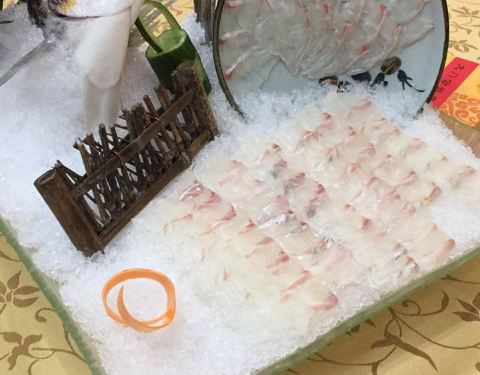 今晚食金雕刺身,刺身做得不错,但煎焗鱼骨有点咸,总体不错!