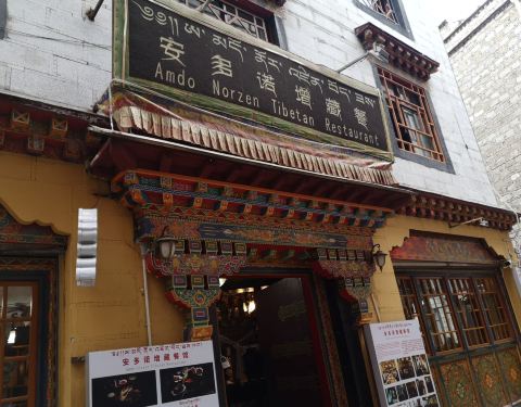 因行程调整原因,头一次能在拉萨逗留一整天,打卡了几处网红店。其中就有这家在八廓街附近的藏餐厅。 八廓街附近的路不是很好找,有几家店都在八廓街延伸出去的胡同里,好在现在手机功能发达了许多,用APP地图的...因行程调整原因,头一次能在拉萨逗留一整天,打卡了几处网红店。其中就有这家在八廓街附近的藏餐厅。 八廓街附近的路不是很好找,有几家店都在八廓街延伸出去的胡同里,好在现在手机功能发达了许多,用APP地图的徒步导航功能就能给指过去。 餐厅的装饰是非常典型的藏式风格,店里燃着酥油灯,满满的香气。 看了网上推荐尝试了他家的安多牦牛盖饼,确实很好吃,牦牛肉也很嫩。其他菜也不错,不是很浓重的藏餐口味的做法,比较适合各地来的游客来品尝。还有酥油茶也很棒,很香。