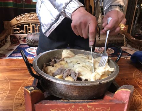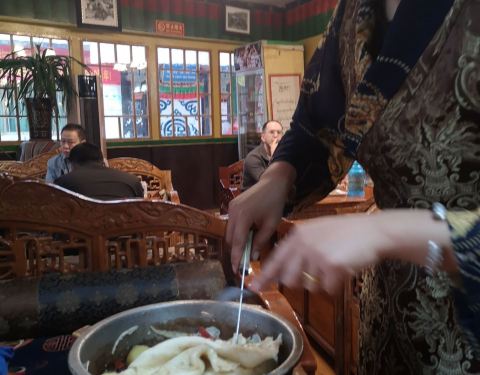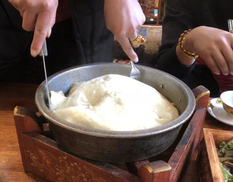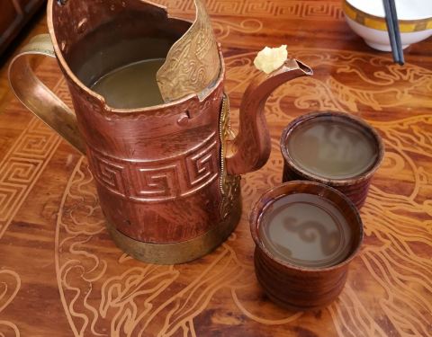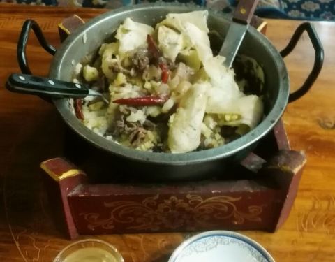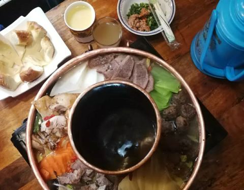 我终于找到了如何接受藏餐的方法。 秘诀就是,别自以为是地寄希望于点很多菜、来个乱中取胜,而是干干脆脆地用最简单易行的火锅来体验这些高原上特有的食材。 当然,酥油茶是必然要试一次的。