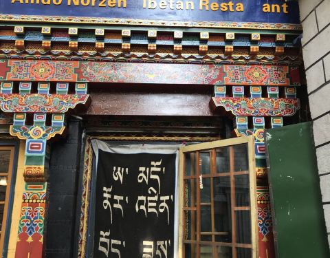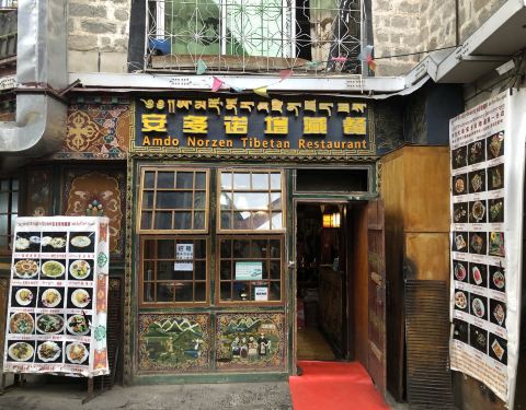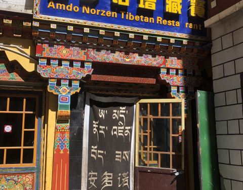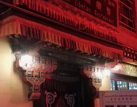 家庭式餐馆,鲜明的藏式风情,走进店里,屋子里都是酥油味,这家店的招牌菜是安多盖饼牦牛肉,饼子由青稞面制成,特别有劲道,里面是土豆、牦牛肉和洋葱,土豆贴在锅底吸收了牛肉和香料的味道,好吃极了。酥油蘑菇,吃起来鲜美无比,蘑菇上面有糌粑。餐厅推荐菜:安多盖饼牦牛肉、芝麻菠菜、甜茶等。