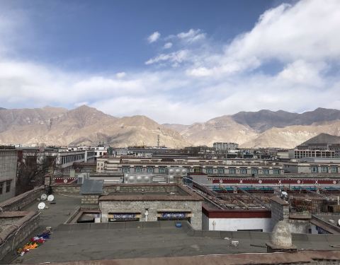 在林廓东路与北京东路交口附近的维也纳酒店住下,搜了一下美食,导航两分钟便来到这里。因为没吃早点,12点进入,我是第一位食客。浓郁的藏式装修风格,安安静静。店里小哥推荐,因为自己,只点了一个,足足分量,78元,一壶甜茶10元,择阳光照耀的窗边坐下,欣赏装修等待美食,一切安安静静,祥和平静。餐后来到她家楼顶向西眺望大昭寺金顶和布达拉宫,向北山坡上的色拉寺......一切尽收眼底。这个午后在这里慢慢度过,阳光暖暖明明地照耀着,感恩这一切,一切都是最好的安排.....