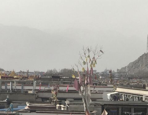 ...坐下,欣赏装修等待美食,祥和平静,餐后来到楼顶向西眺望大昭寺金顶和布达拉宫,一切尽收眼底美极了