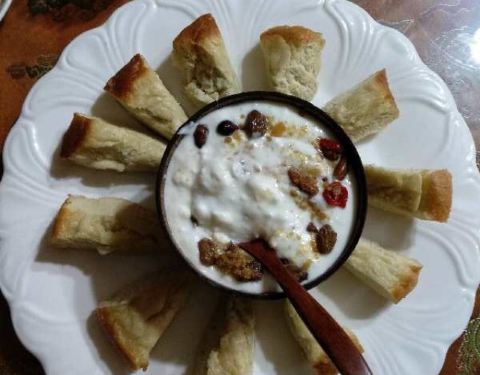 从网上找到的这家藏餐店,门脸不大,差点走过。里面是藏式装饰。我们没吃过藏餐,不知道能不能适应,点了安多盖饼牦牛肉小锅,上面是一张发面薄饼,下面是土豆、洋葱和牦牛肉等,像我这种不常吃肉的人都觉得好,...从网上找到的这家藏餐店,门脸不大,差点走过。里面是藏式装饰。我们没吃过藏餐,不知道能不能适应,点了安多盖饼牦牛肉小锅,上面是一张发面薄饼,下面是土豆、洋葱和牦牛肉等,像我这种不常吃肉的人都觉得好,土豆入味,洋葱香,牦牛肉是瘦肉,有浓郁的黑胡椒味道,非常好吃;点了一个酥油烤香菇,香菇鲜嫩,香滑适口;点了一个青稞窝窝配酸奶,这是看周围好几个人点我们也点的,我们两个人已经吃不了了。酸奶说是他们自己做的,口味比我们平时吃的酸奶酸,我俩加了好几勺白糖吃的,也很好。酥油茶10元一壶,我们转经累了喝正好,一壶都喝了。总之吃得很开心,希望下次再去。