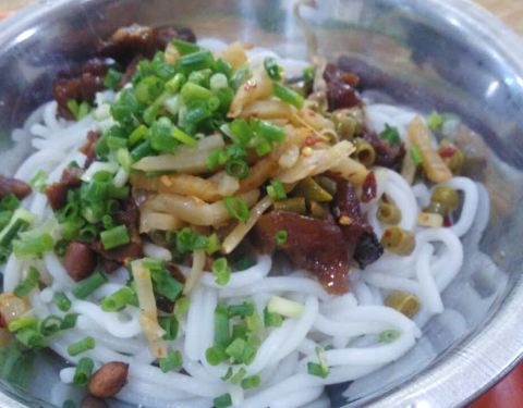 早餐第一次吃粉 入乡随俗!粉儿都会放肉,只好告知要素的,还点了脚粉儿,可以用支付宝支付,很方便!