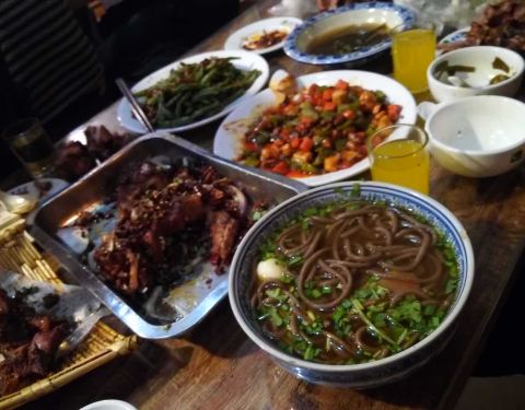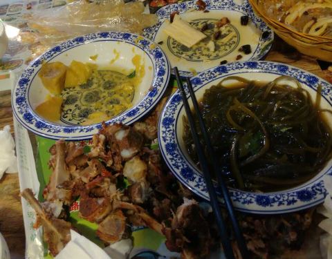 牛汤饸饹,牛膝盖骨,老豆腐,凉啤酒,哈哈哈哈
