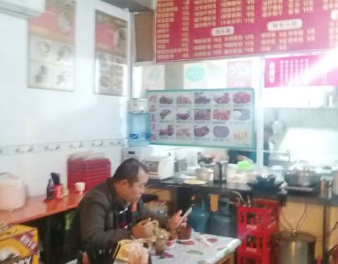 ...是一家店面很小的餐饮店,店内装饰一般,这里为顾客提供数十款特色小吃,有馄饨、面条、蒸饺、包子等