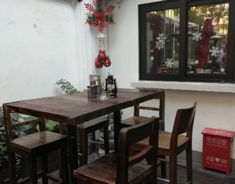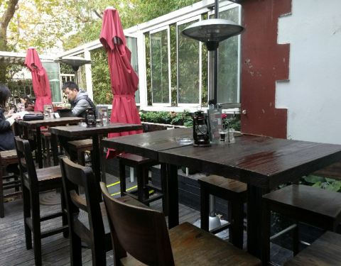 - 很小资,自带大花园,白天可坐在露天高脚凳上用餐,吃吃下午茶,人也挺多的,晚上可以喝喝酒,环境雅...