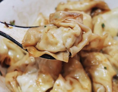 餐厅隐藏在老旧的居民区里。午餐时刻,满满当当挤满了老老少少。 进店门口点餐,然后见缝插针找座位坐下。馄饨会送餐到桌,但小笼得去自取。待一锅小笼出炉,后厨端出摞得老高的蒸笼,人群呼啦一下把取餐处围住。我这个外地人伸头张望,生怕赶不上这一批。 小笼包三两六只。个头比杭州的小笼包大了一整圈。皮薄馅儿大,咬上一口,微甜的汤汁流出。再往里一瞧,亦可圆滚滚的扎实肉馅儿,甜味全在里头。搭配桌上的恒顺香醋和辣油,压压甜度,解腻提鲜。和南京的鸡鸣汤包比起来确实不错。 把生活的热情,都揉进了这一口小笼里。抿一口汤汁,咸甜的肉汁顺着舌尖翻滚而下。这大概就是生活里的小确甜了吧。 笑来喜的开洋馄饨,倒是更讨我喜欢。皮子劲道,肉馅不甜,扎实紧致,好吃。开洋,晒干的小虾。江浙一带尤为喜爱。几颗晒干的小虾仁就能爆炸出绝世鲜美,开洋入馅儿,比味精要灵光得多。 馄饨可拌可汤。拌馄饨,和别的地方的不同,酱油底料加糖,葱油拌之。咸甜风味加上葱油香气牢牢裹住馄饨,又香又鲜。 汤馄饨有红白两种。白汤清水底,突出馄饨本味,觉得寡淡也可搭配蘸料。红汤更喜欢,飘着香香的辣子,辣油以鲜香为主,不辣。