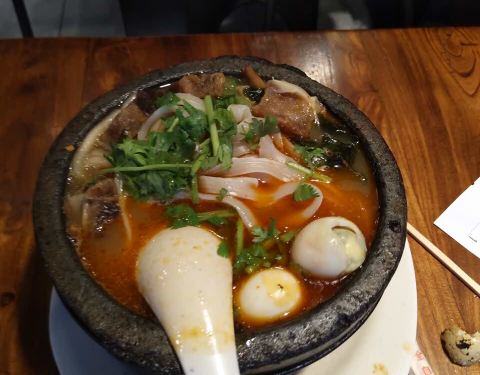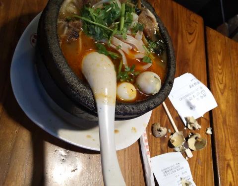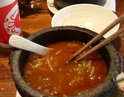 土豆粉很爽滑可口,也比较有嚼头,汤很鲜美,配菜多,量足价格很实惠