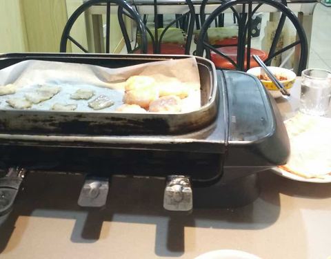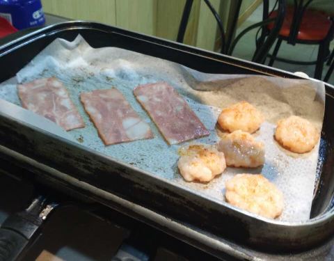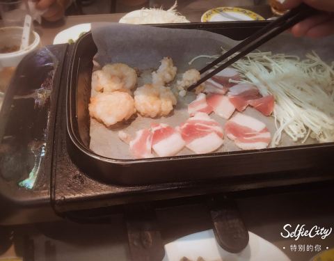 ...,点了虾饼、黑胡椒牛肉、牛舌、麻辣鸡腿肉、烤肠、鱿鱼,人均不到70,都已经吃撑了,还有些许浪费