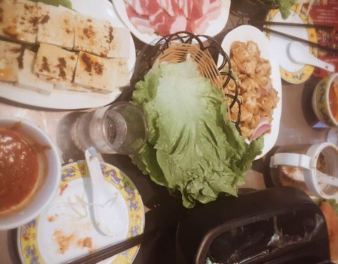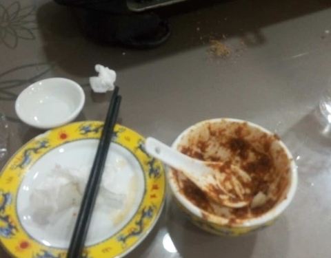 我跟我的两个室友来吃的,很好吃,酱也挺好吃的的,呐,这是我们吃剩的盘子