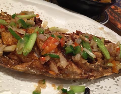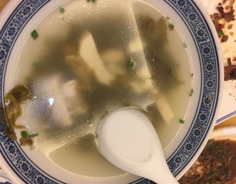 吃饭将就三样,一味道,二环境,三服务。先说味道,第一道菜上的是腰片,端上来后就有一种并不让人愉快的气味,吃起来也明显老了;黄鱼煎过了头,皮很硬;椒盐排骨像是炸了无数次,不但油,而且柴,味同嚼蜡;茶树菇和锅巴不评价,只是和心怡还有差距,不想饭店的作品。豆腐汤是唯一优秀的,那也只是豆腐汤罢了。最后追加了四个扇贝,粉丝太多油太多,肉太老。二是环境,坐落在很老的街楼,灯光也不太亮,空调也不太凉,还有蚊子。最后是服务,小镇饭店,大多数是没有服务可言的,也就是看热不热心,口碑上评价超好,那除非我见到了假的老板娘……