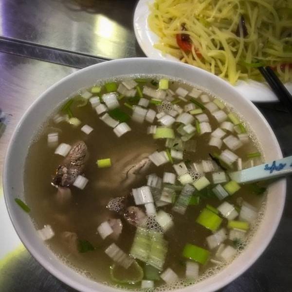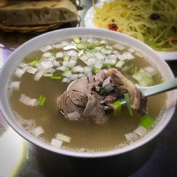 正宗老五井羊汤的品质是很不错的,在济南我见到过两家,并不是一回事,一东一西,还是靠着段店立交桥的这家好吃。 「羊肉汤」老五井羊汤做的是清汤,相比单县羊汤汤色清亮,因为胡椒放的比较多,口感略有辛辣,十分适合当下逐渐变冷的天气,如果到了冬天喝上一碗应该会更美。15元/碗的羊肉汤里给的羊肉居然不少,且以瘦肉居多,除了羊肉的鲜美几无任何腥味,一碗很高水准的羊肉汤。单独加了一个「羊脑」,无杂味,有柔糯的口感和独特的香。清汤羊汤的佳品,特别推荐! 配着羊汤当然也要点几块「发面饼」,2元/块,一般人两块足矣,既好消化还好吃。 店内除了羊汤系列外还有烧烤和炒菜。 随手点了个「酸辣土豆丝」,手切的土豆丝,是那种大火爆炒的味道,喜欢。 吃的都不错,价格还便宜,唯一遗憾就是环境一般。