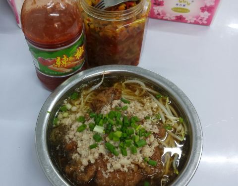 排骨米面.色味俱佳、香气扑鼻、垂涎三尺、美味绝伦、味道上乘、清新爽口、肥而不腻、外焦里嫩、酥脆可口。