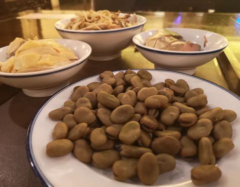 咸亨酒店就在鲁迅故居景区入口这里,是绍兴老字号餐馆了,酒店有餐饮也有住宿,餐馆正门还原了鲁迅笔下孔乙己里的风貌,还有孔乙己欠十九钱的字样,可以“温一碗黄酒,要一碟茴香豆”体验一下孔乙已的生活,绍兴黄酒略带甜味,后劲还是有点足的,茴香豆味道就一般了。饭点餐馆里人挺多的,点菜是通过先扫描桌上二维码,手机下单后去前台取凭条然后去窗口拿菜,传统的几个比如绍三鲜、臭豆腐、花雕醉鸡、绍兴酱鸭还有一些蒸臭菜都是非常好吃且有特色的。