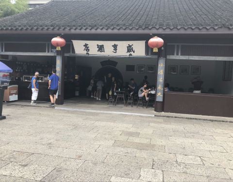 咸亨酒店就在鲁迅故居景区入口这里,是绍兴老字号餐馆了,酒店有餐饮也有住宿,餐馆正门还原了鲁迅笔下孔乙己里的风貌,还有孔乙己欠十九钱的字样,可以“温一碗黄酒,要一碟茴香豆”体验一下孔乙已的生活,绍兴...咸亨酒店就在鲁迅故居景区入口这里,是绍兴老字号餐馆了,酒店有餐饮也有住宿,餐馆正门还原了鲁迅笔下孔乙己里的风貌,还有孔乙己欠十九钱的字样,可以“温一碗黄酒,要一碟茴香豆”体验一下孔乙已的生活,绍兴黄酒略带甜味,后劲还是有点足的,茴香豆味道就一般了。饭点餐馆里人挺多的,点菜是通过先扫描桌上二维码,手机下单后去前台取凭条然后去窗口拿菜,传统的几个比如绍三鲜、臭豆腐、花雕醉鸡、绍兴酱鸭还有一些蒸臭菜都是非常好吃且有特色的。