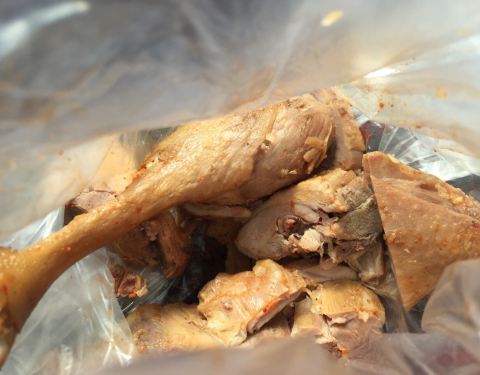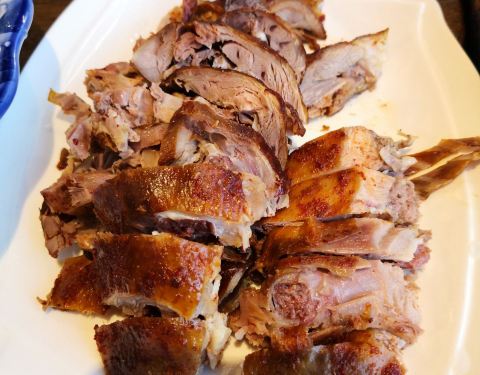 岚谷熏鹅是武夷山有名的特产之一,住的酒店附近有一家,看着还不错。老板娘说熏鹅都是每天现做的。熏鹅很大,两个人买半只也吃不完,而且鹅是发物,怕吃多了会发。走之前过来买了一个鸭腿,跟熏鹅一样做法,称斤卖的,一个鸭腿12块多。老板娘帮忙把鸭腿切成块,吃起来比较方便。鸭腿味道不错,跟浙江这边吃到的很不一样,以后有机会再去吃熏鹅。