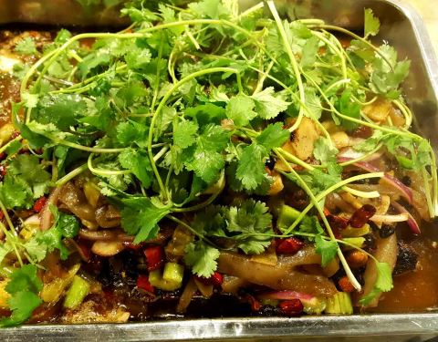 烤鱼是重庆特色,有铁锅烤鱼,现在为了不糊锅,发展到了纸上烤鱼,食材一般都是选择的草鱼,这样肉质比较紧实,大刺也容易去,点的香辣味的,很好吃