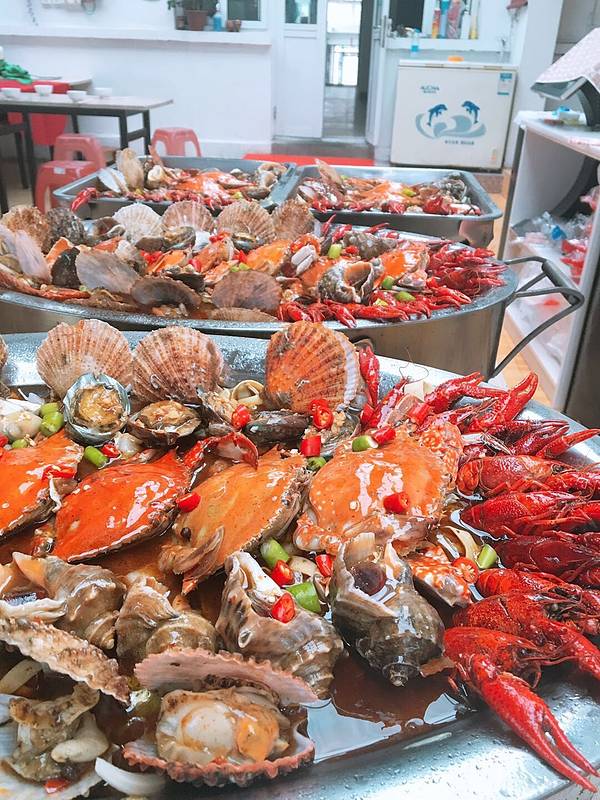 东戴河的海水大家自己看吧!东戴河的海鲜!新鲜肉肥,渔家院一定选择好,东戴河晶莹渔家院是自己家的一个渔家院,走路到海边就几分钟,海水清澈见底!渔家院的海鲜大咖也是独一无二味道!微辣,麻辣,超辣,变态辣!回味悠长 啊! 控制不住的吃货!海鲜大咖超级麻辣版来啦! 。