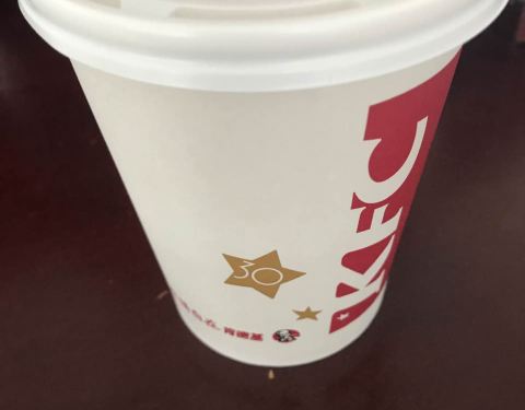 点了一杯热豆浆和油条。他们家的油条比德克士的好吃太多。