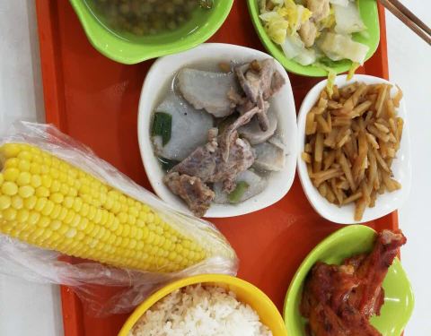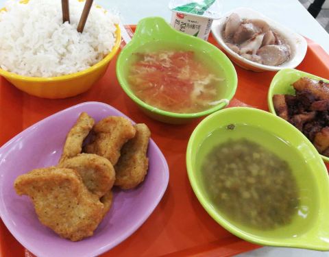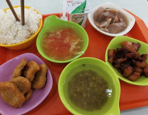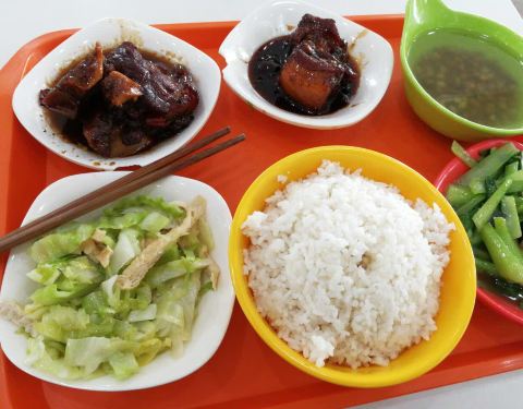 菜便宜,种类多,口味也还行,有些肉偏闲,酱油放的多,颜色太重,没有食欲