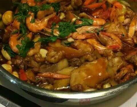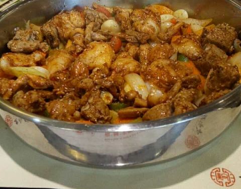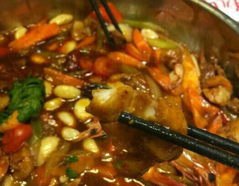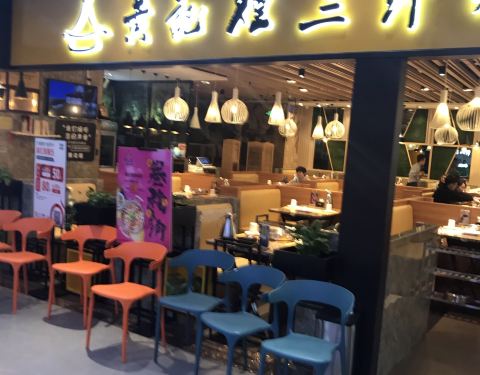 - ...60三层美食汇,店铺挺大,用餐环境还行,有肥牛、虾、海鲜、牛蛙、鸡翅等等口味的焖锅,味道很不错