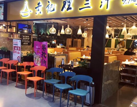 黄记煌三汁焖锅国贸店在国贸360三层美食汇,店铺挺大,用餐环境还行,有肥牛、虾、海鲜、牛蛙、鸡翅等等口味的焖锅,味道很不错。