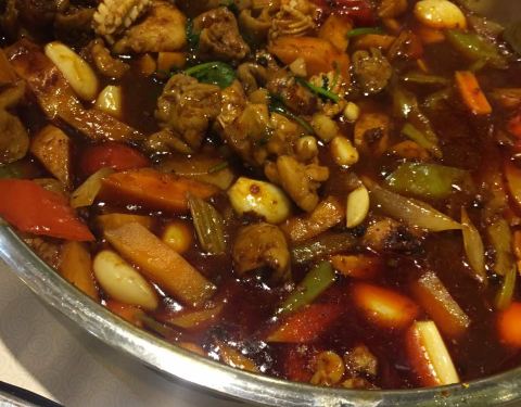 ...60三层美食汇,店铺挺大,用餐环境还行,有肥牛、虾、海鲜、牛蛙、鸡翅等等口味的焖锅,味道很不错