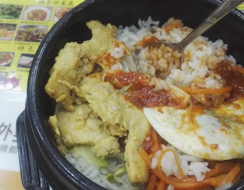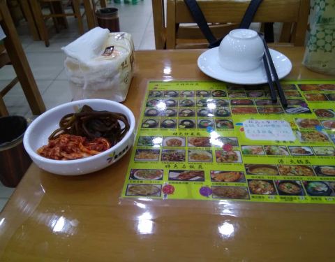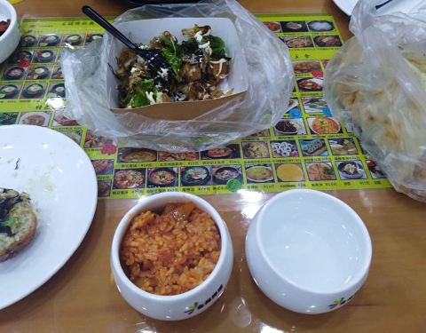 跟朋友进来尝尝,没来得及拍很多照片,外面就是江大后街,买了很多小吃,推荐章鱼烧和烤面筋,菜煎饼还行,这家店,她们点的是全州拌饭和五花肉泡菜拌饭,味道还可以,店家一上来就上了海带咸菜,还有一壶水,餐具也齐全,服务态度还不错