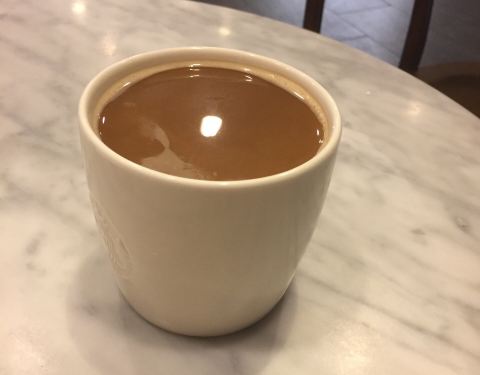 喜欢冰的焦糖玛奇朵,咖啡非常不错,牛奶也非常地醇厚,冰饮用的是透明的玻璃杯,热饮用的是纸杯,我觉得杯子的品质非常的不错,另外我还买了他家的口香糖,好好吃,不含糖的,薄荷味道很大的