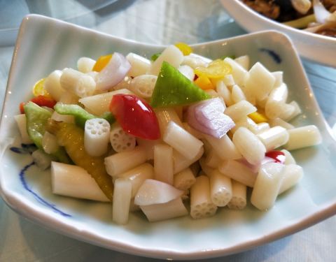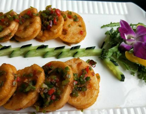 联宾酒店以烤鸭著名,所以烤鸭是必点之一,现在清蒸鲽鱼也不错哦!炸糕一直是金典。藕茎非常脆爽,喜欢吃辣的朋友最爱。鲽鱼几乎没刺,鲜嫩,特别适合老人,只是忘记拍照。总之,总有一款适合你,吃货就来尝试吧!