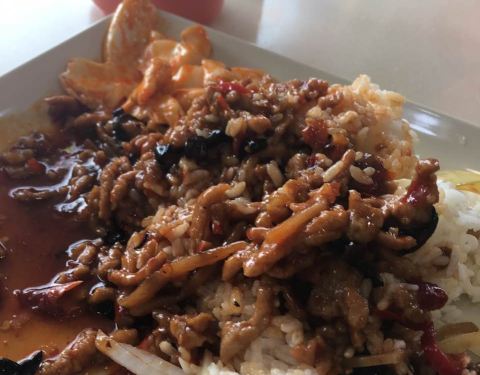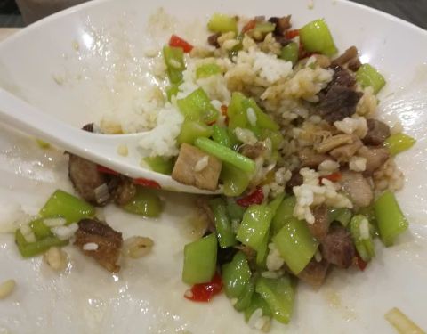 带着孩子来吃的,油条一上就吃完了没照到,削骨肉盖饭很好吃,肉有甜味。火腿炒饭也非常美味