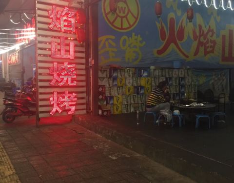 - 一条街全是烧烤和美食,烟子太大了,位置很好找。醉虾味道不错,喜欢吃辣的不要错过