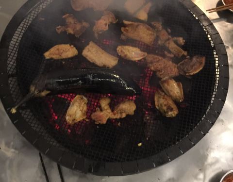 - 烤鲫鱼和烤茄子是他们单独烤好端上来的,鲫鱼烤的嫩、也好吃。很有氛围哦,味道虽然一般,但是体验很爽