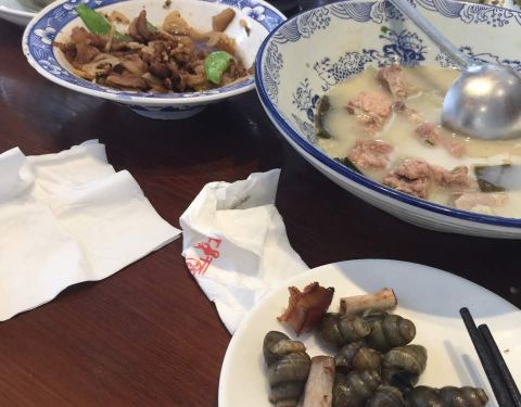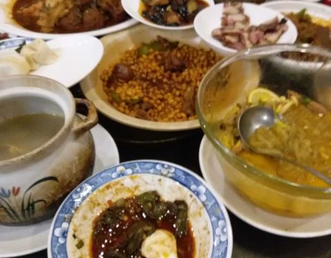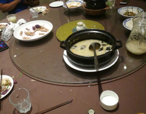 环境还可以,菜品分量蛮多10个人吃好后还剩这么多。