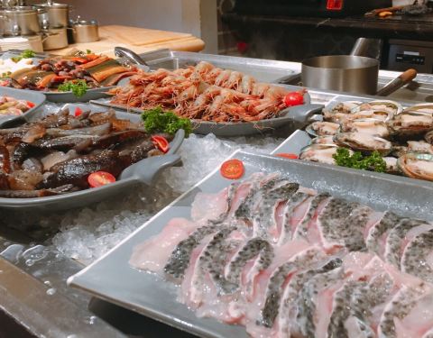 - 菜品新鲜、味道好。刺身、火锅、烧烤,应有尽有。团购价168 一人,非常值得