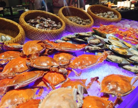 团购价168 一人,非常值得。以海鲜为主,海鲜品种非常多,供应量大,而且及时补充。大闸蟹凭手环每人限一只,其它不限量。菜品新鲜、味道好。刺身、火锅、烧烤,应有尽有。服务很好,服务员收拾餐盘很及时,主动...