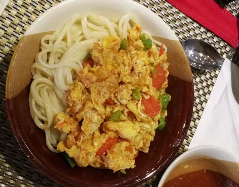 ...非常的有咬劲,只有西红柿面是不放辣的,其他的菜统统放辣椒点缀,不吃辣的同胞,只好多吃西红柿面了