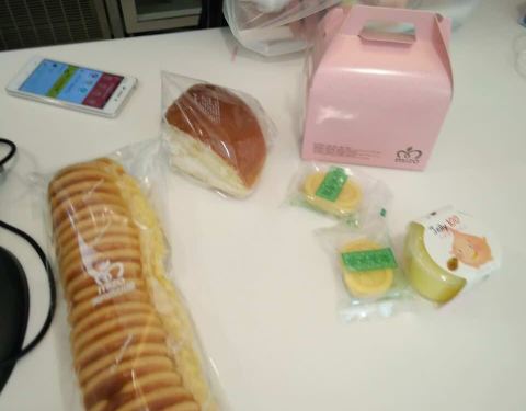 买了黄金糕,泡芙,巧克力三角,还没有吃,看着有食欲。