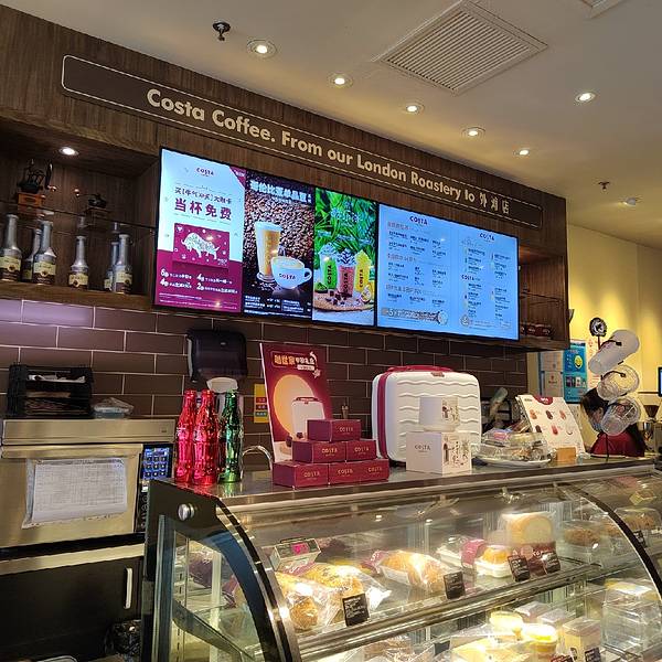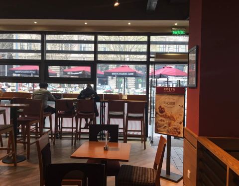 环境还不错啦~就是觉得咖啡没有星爸爸好喝诶…会比较腻的感觉~不过店里位置很多~当星爸爸坐满的时候,costa还有很多位置,就是店里放的歌不好…很low的感觉,不过歇歇脚还是不错的~英式茶不错哦